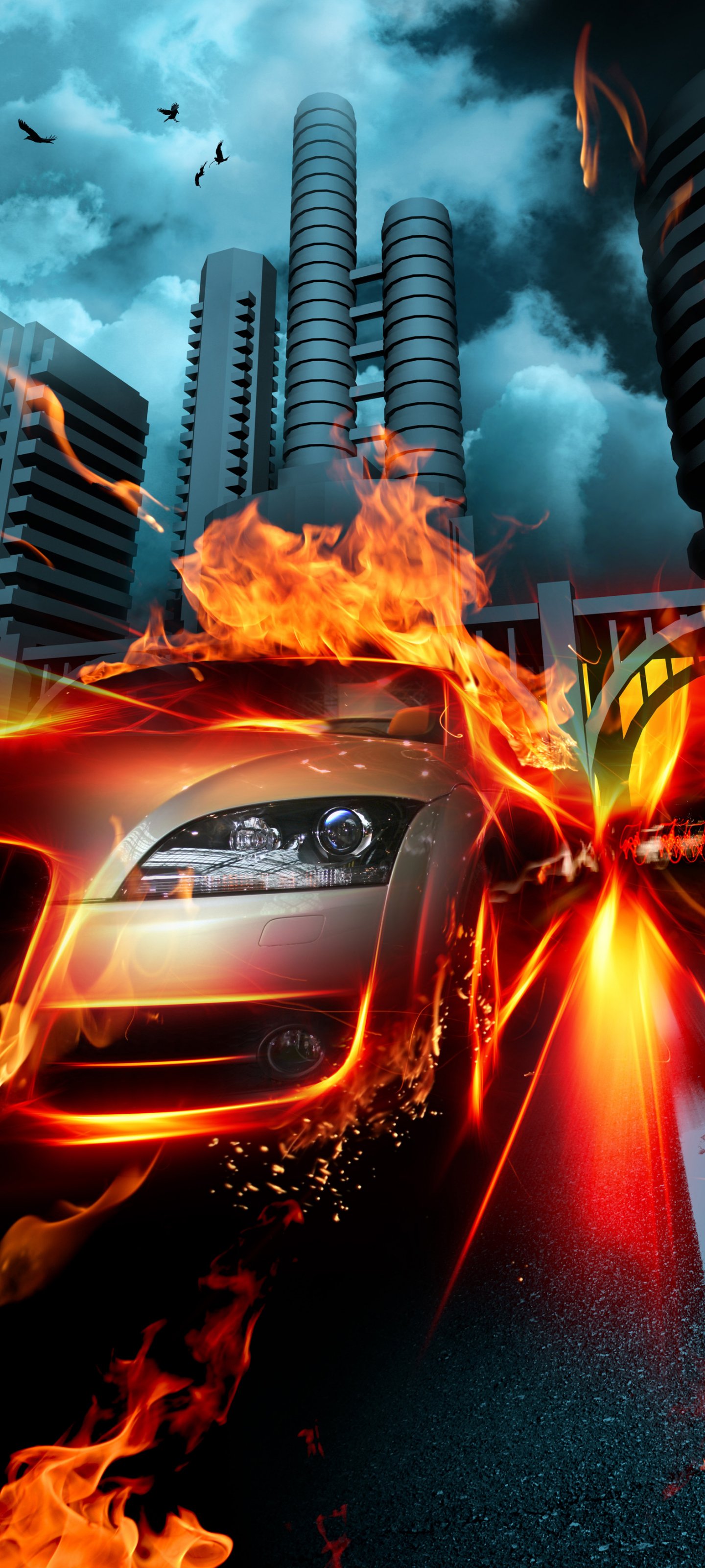 Обои: огонь, пламя, гонка - 1440x3200