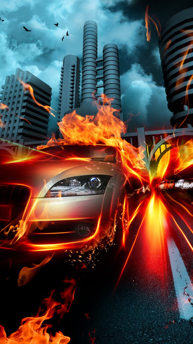 Обои: огонь, пламя, гонка - 750x1334