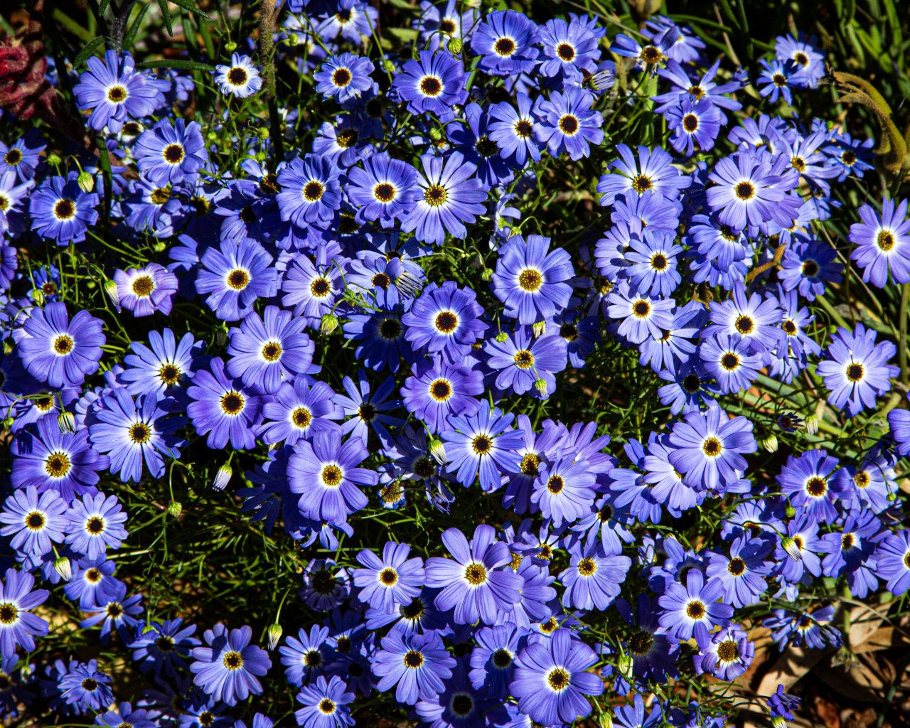 Обои: Брахикома, синие цветы, клумба - 1280x1024
