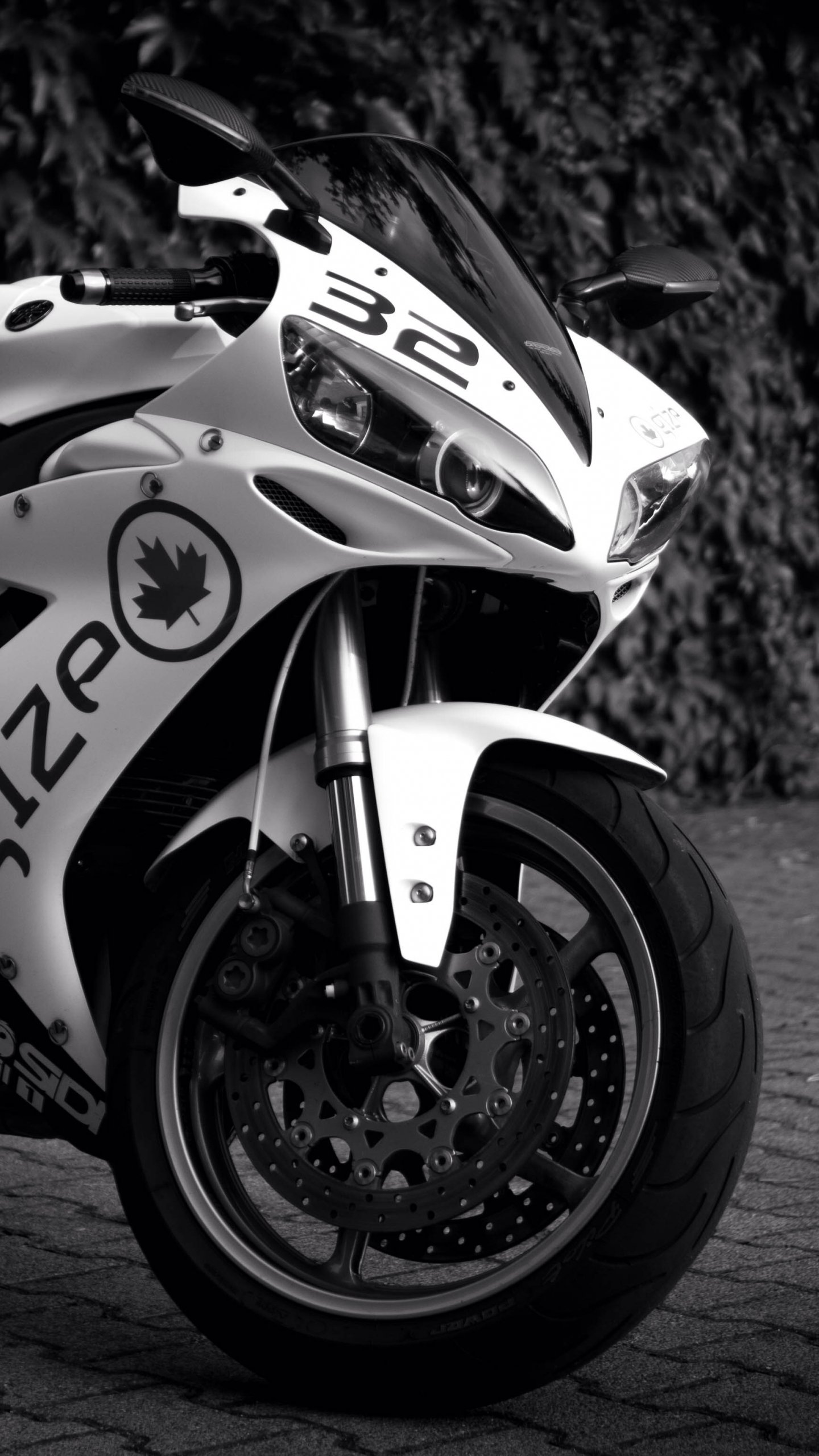 Обои: Yamaha YZF-R1, черное и белое - 1440x2560
