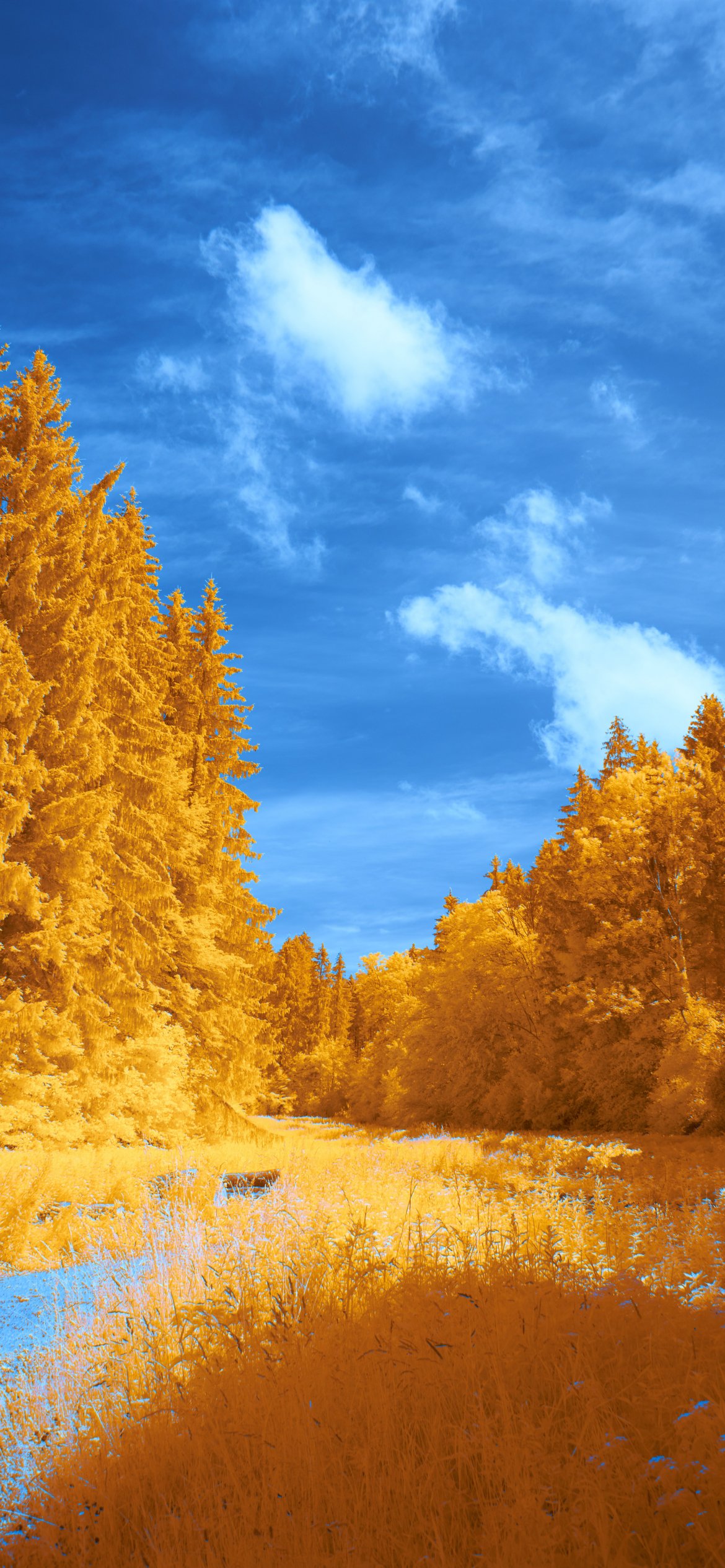 Обои: лес, желтый, голубой - 1170x2532