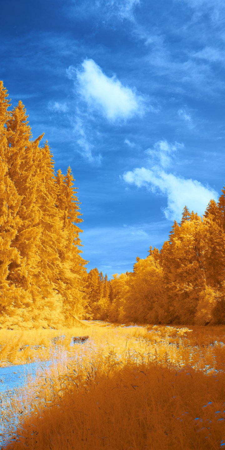 Обои: лес, желтый, голубой - 720x1440