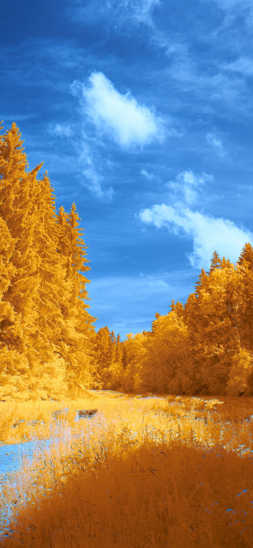 Обои: лес, желтый, голубой - 828x1792
