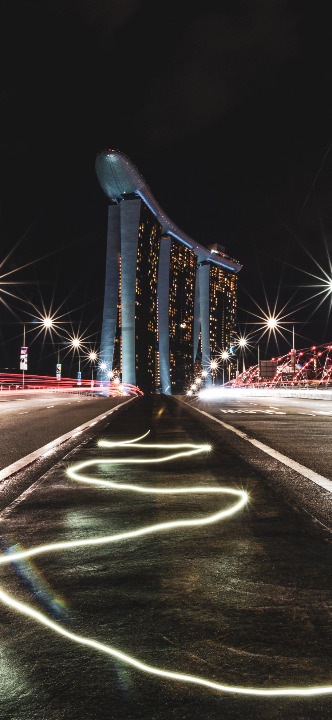 Обои: Marina Bay Sands, Сингапур, ночь - 1080x2340