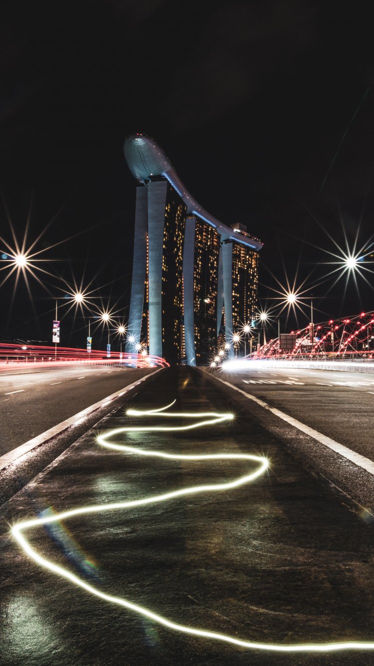 Обои: Marina Bay Sands, Сингапур, ночь - 750x1334