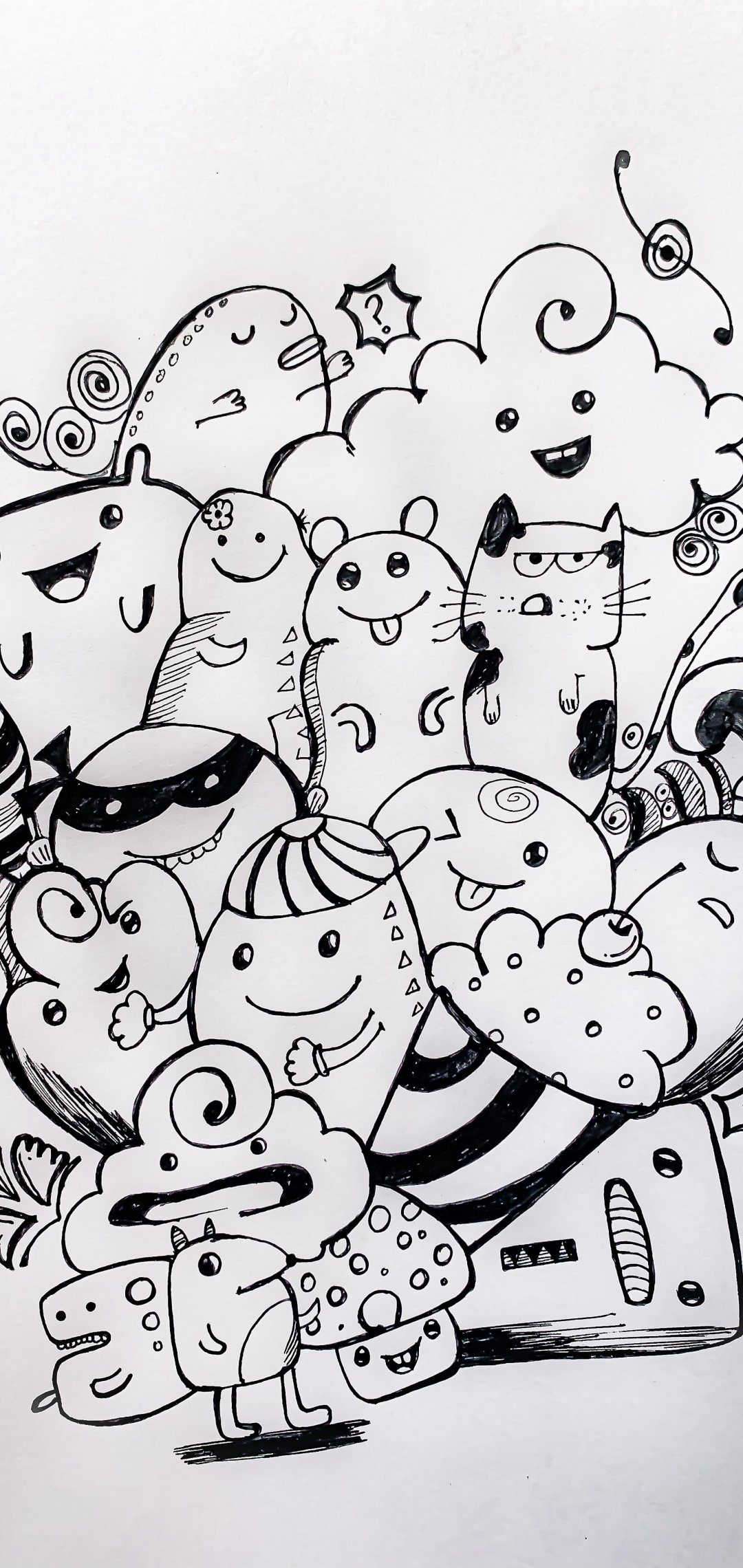 Обои: рисунок, черное и белое - 1080x2280