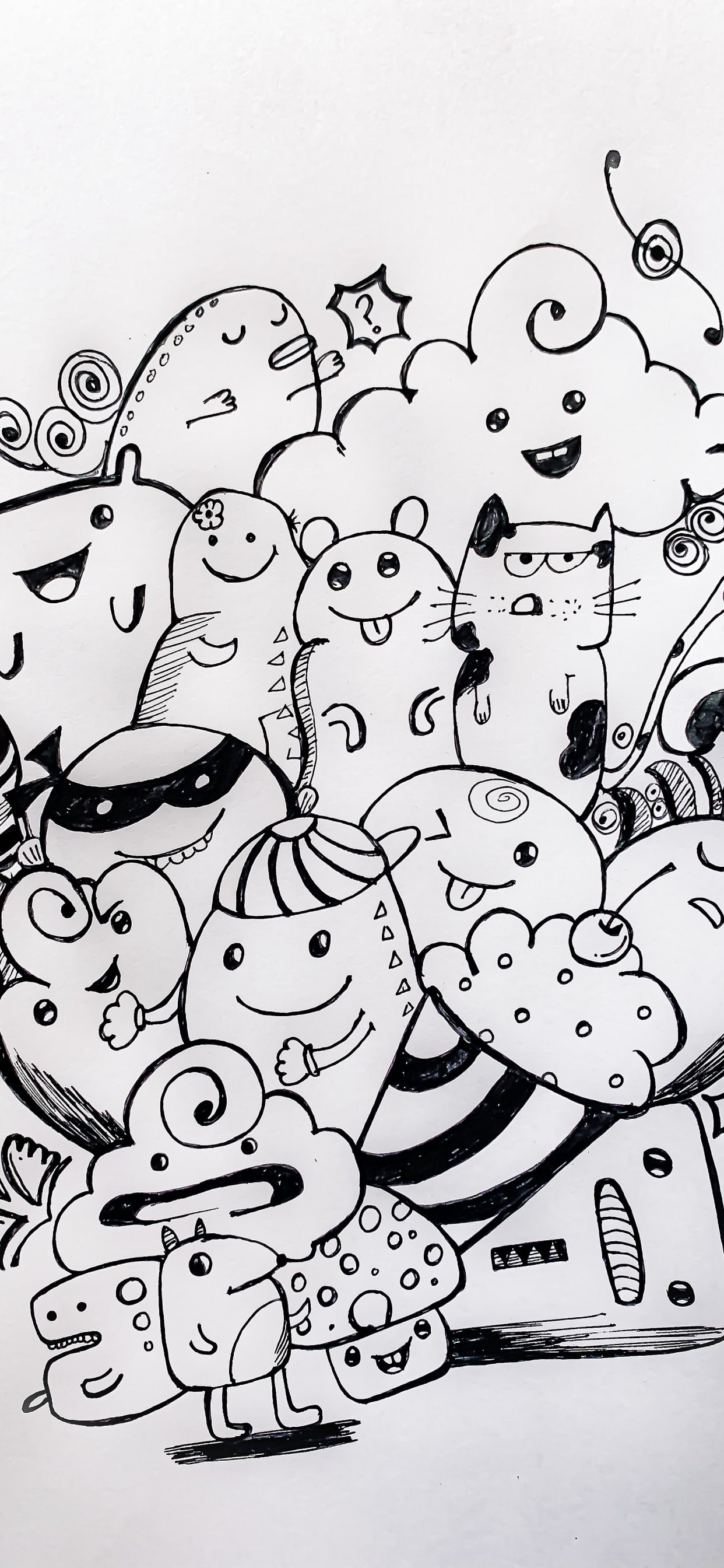 Обои: рисунок, черное и белое - 1242x2688
