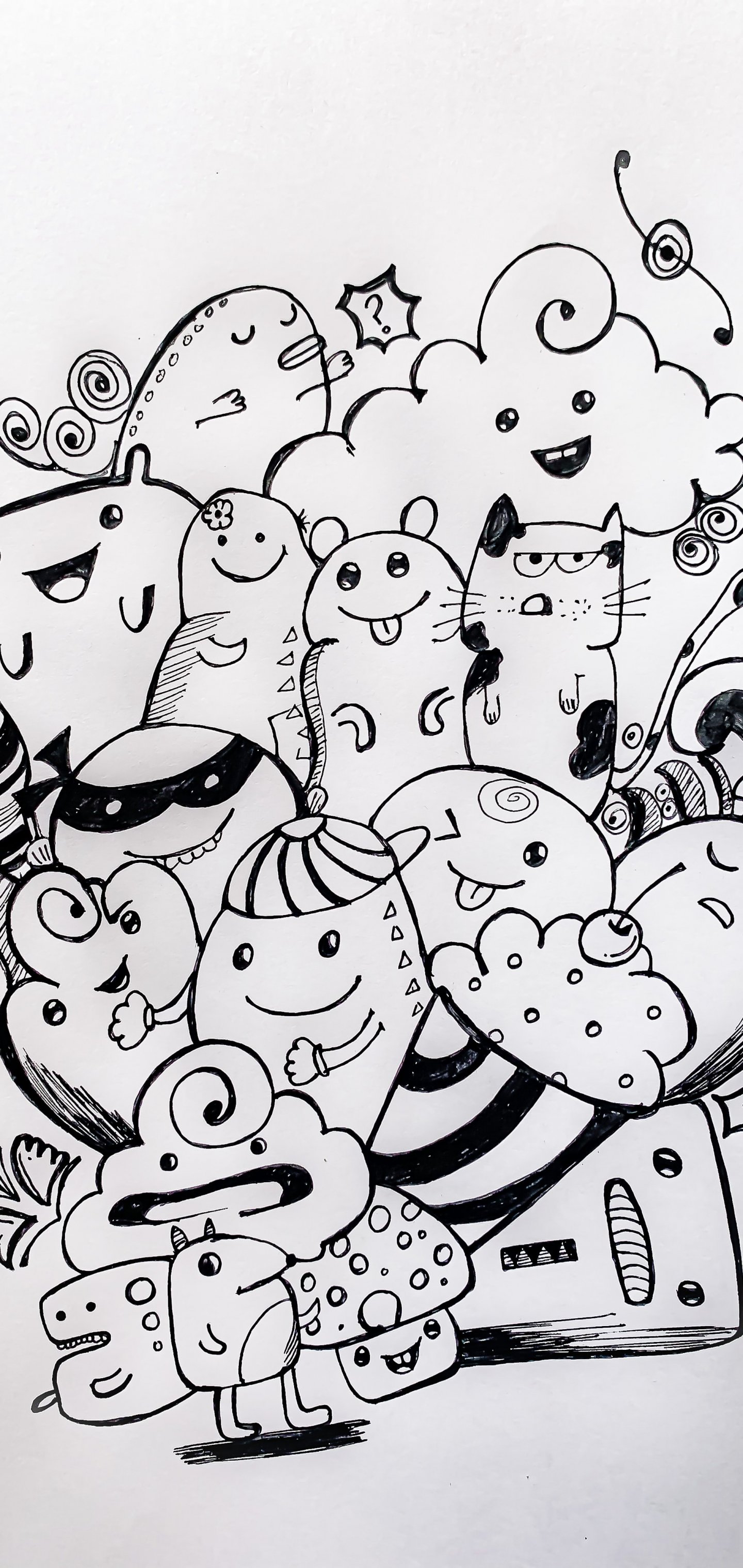 Обои: рисунок, черное и белое - 1440x3040
