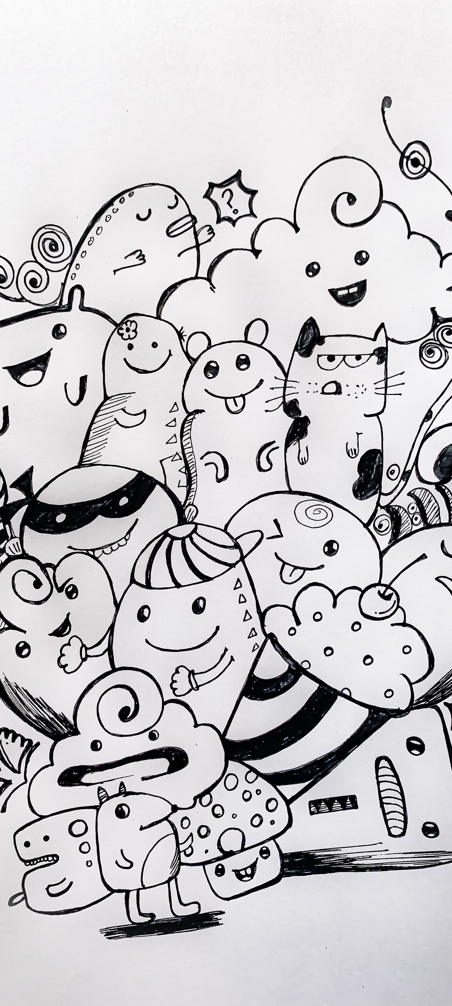 Обои: рисунок, черное и белое - 1440x3200