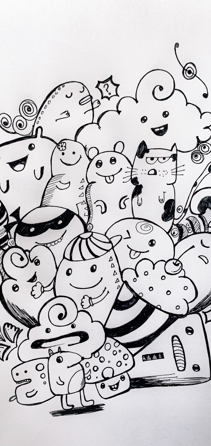 Обои: рисунок, черное и белое - 720x1520