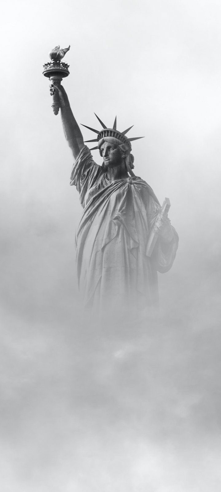 Обои: Статуя Свободы, памятник, черное и белое - 720x1600