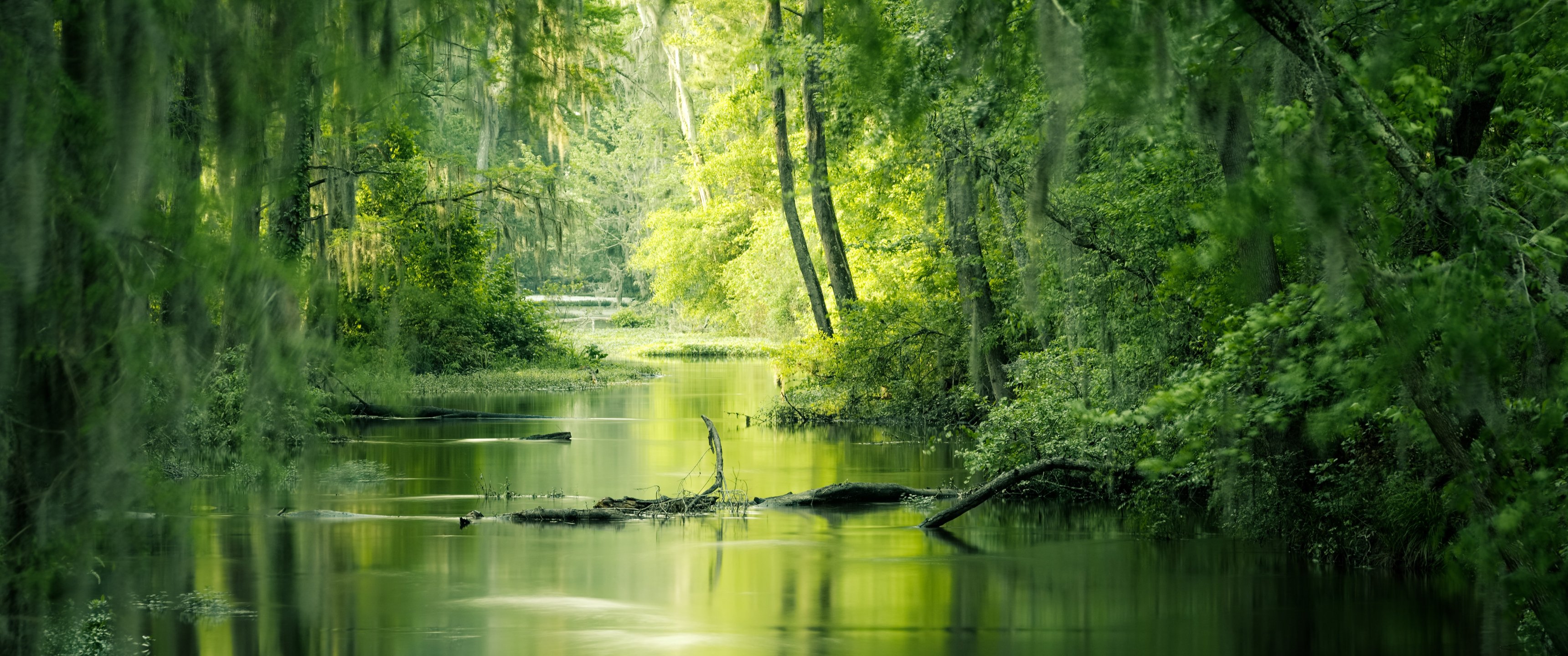 Обои: зеленый, болото, пейзаж - 3440x1440