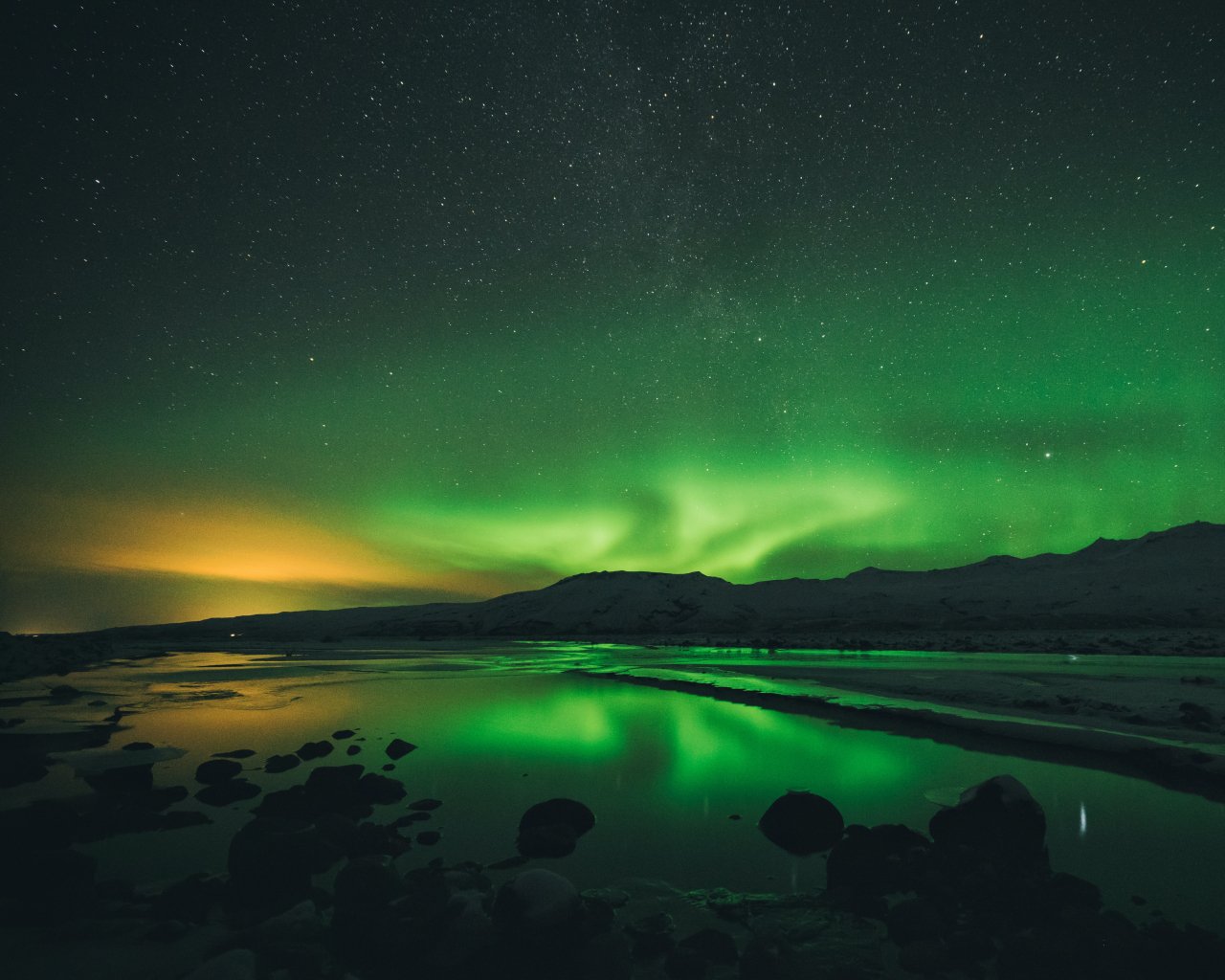 Обои: северное сияние, пейзаж, зеленый - 1280x1024