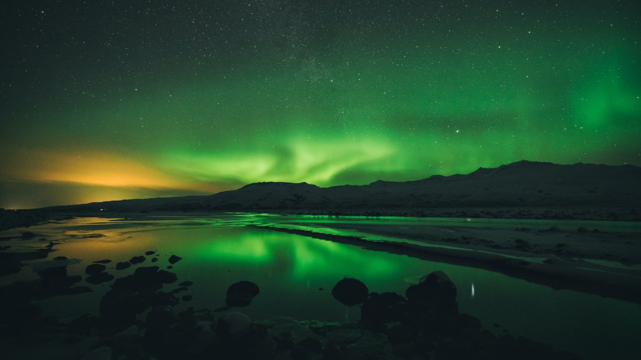 Обои: северное сияние, пейзаж, зеленый - 1280x720