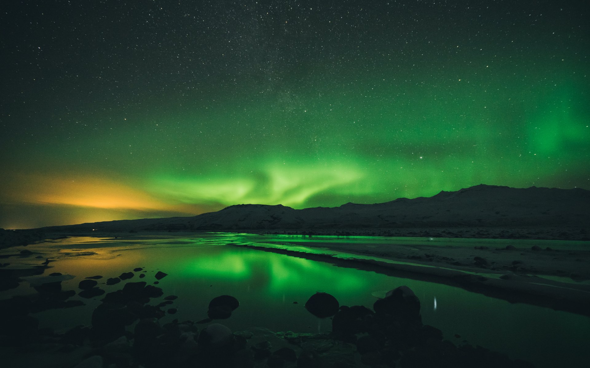 Обои: северное сияние, пейзаж, зеленый - 1920x1200