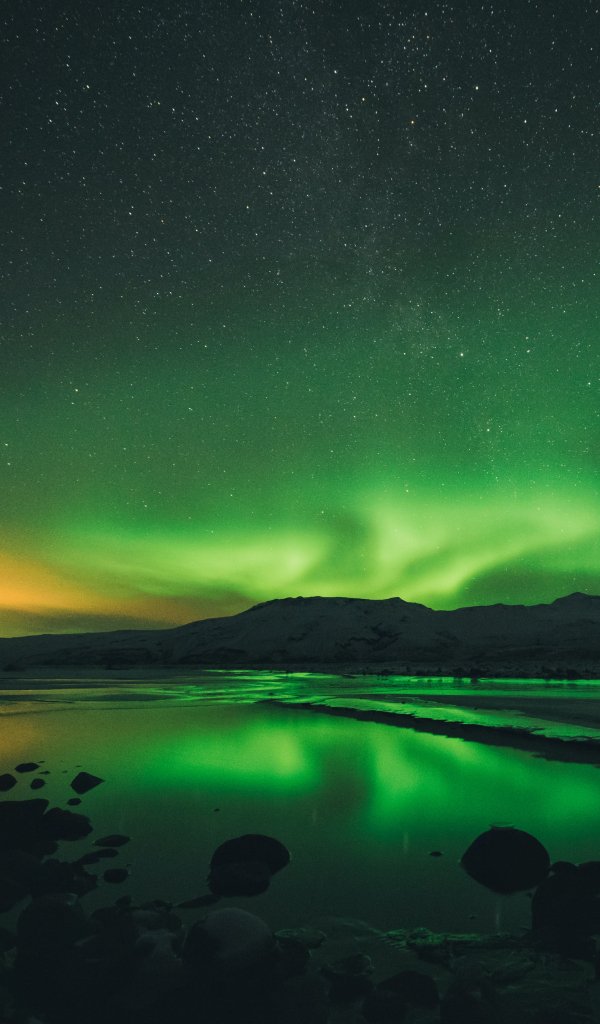 Обои: северное сияние, пейзаж, зеленый - 600x1024