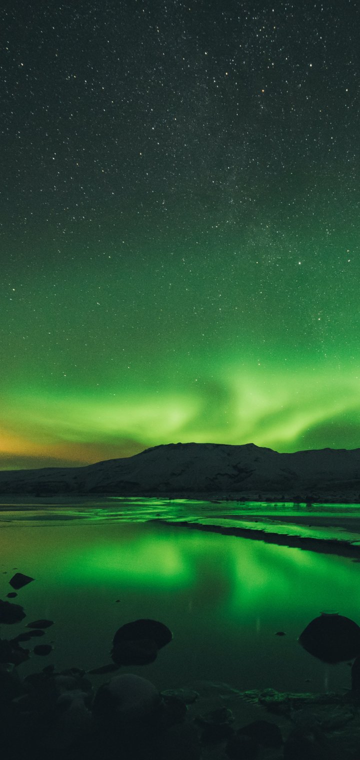Обои: северное сияние, пейзаж, зеленый - 720x1520