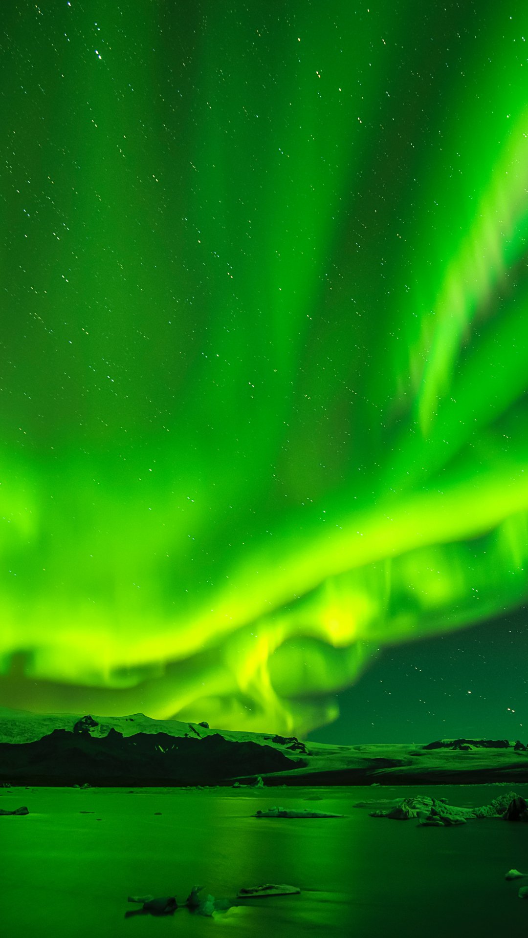 Обои: северное сияние, зеленый, пейзаж - 1080x1920