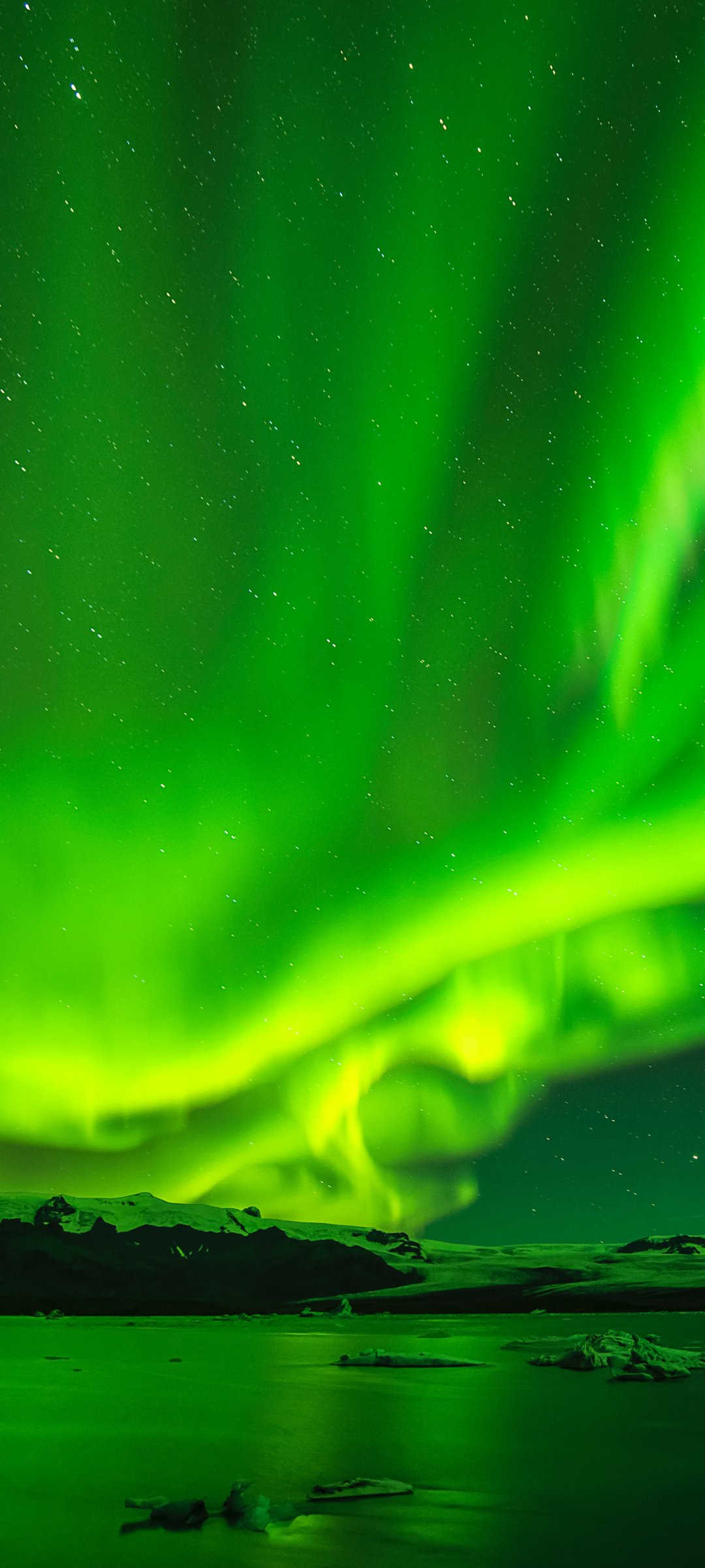 Обои: северное сияние, зеленый, пейзаж - 1080x2400