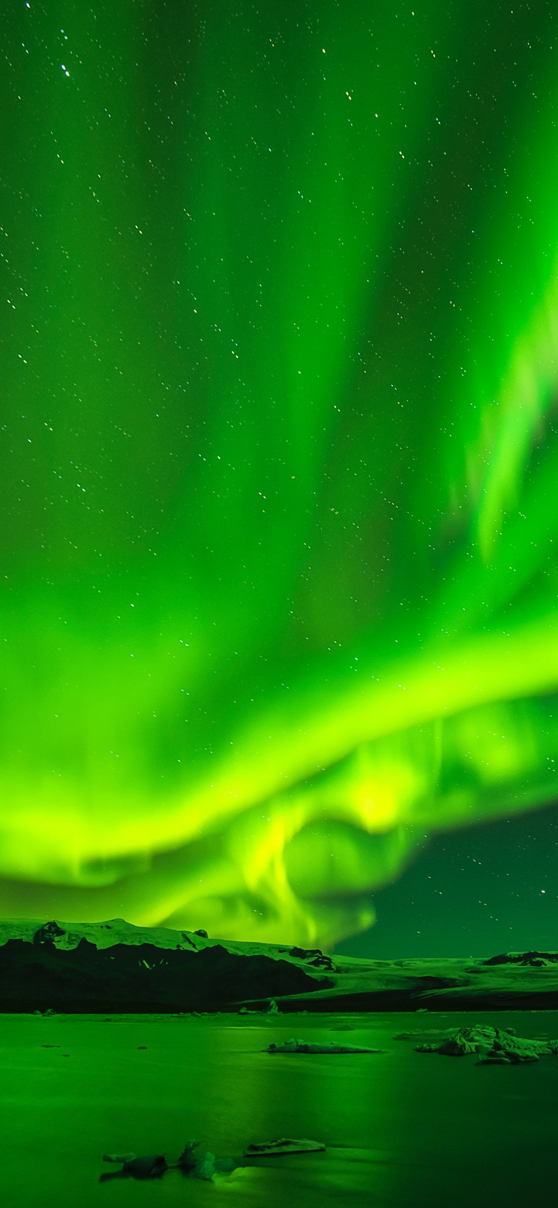 Обои: северное сияние, зеленый, пейзаж - 1125x2436