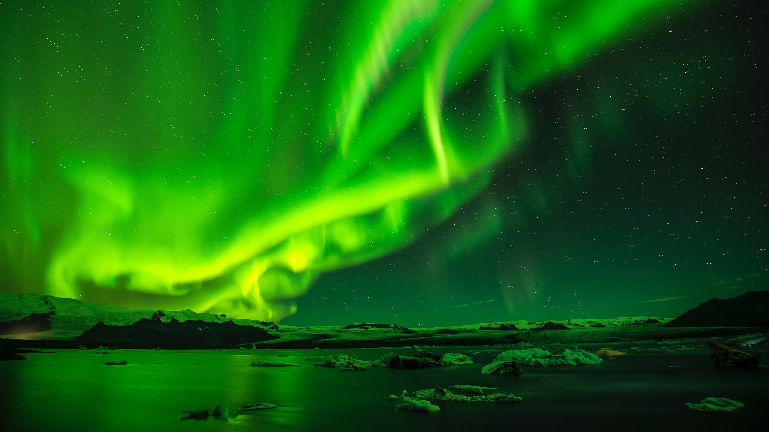 Обои: северное сияние, зеленый, пейзаж - 2560x1440