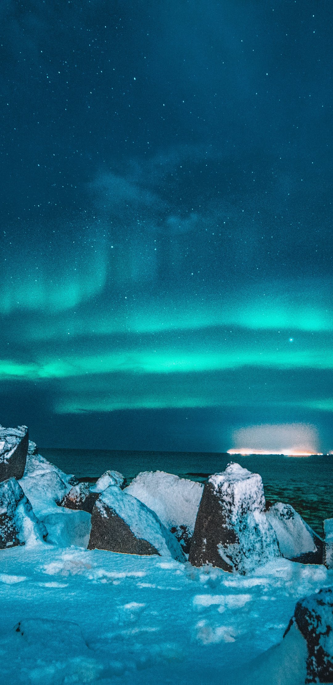 Обои: северное сияние, ночь, синий - 1080x2220
