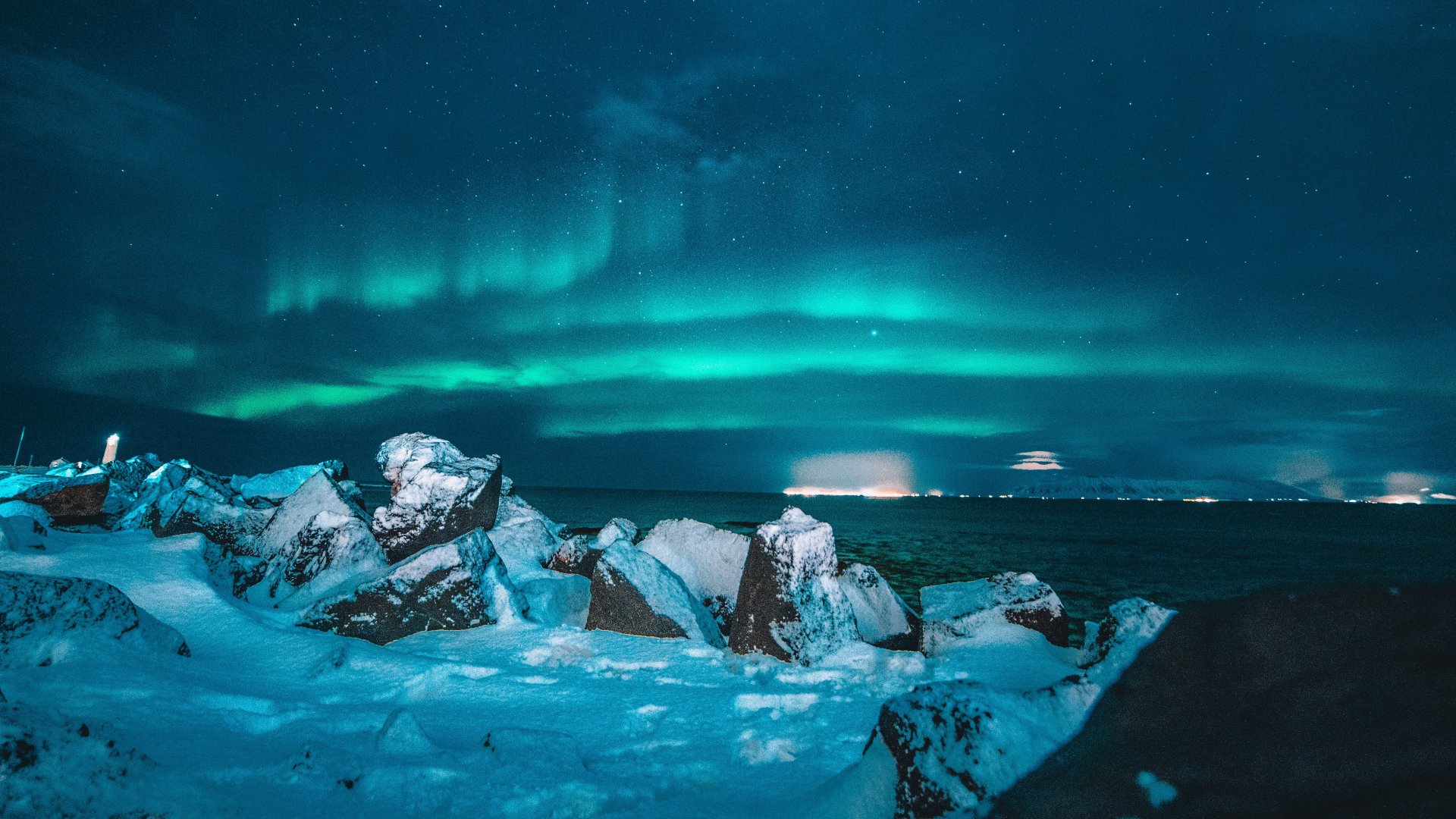 Обои: северное сияние, ночь, синий - 1920x1080