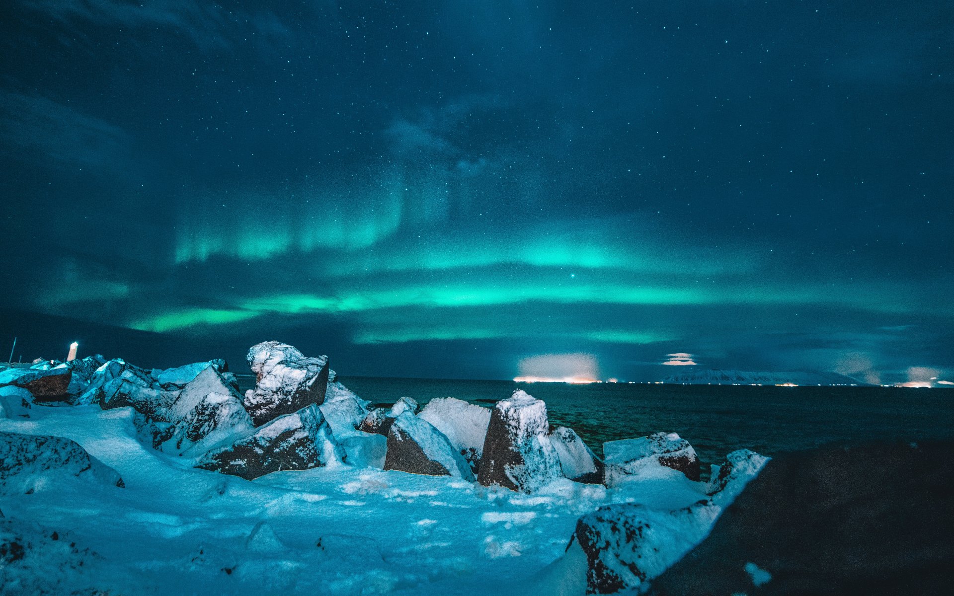 Обои: северное сияние, ночь, синий - 1920x1200
