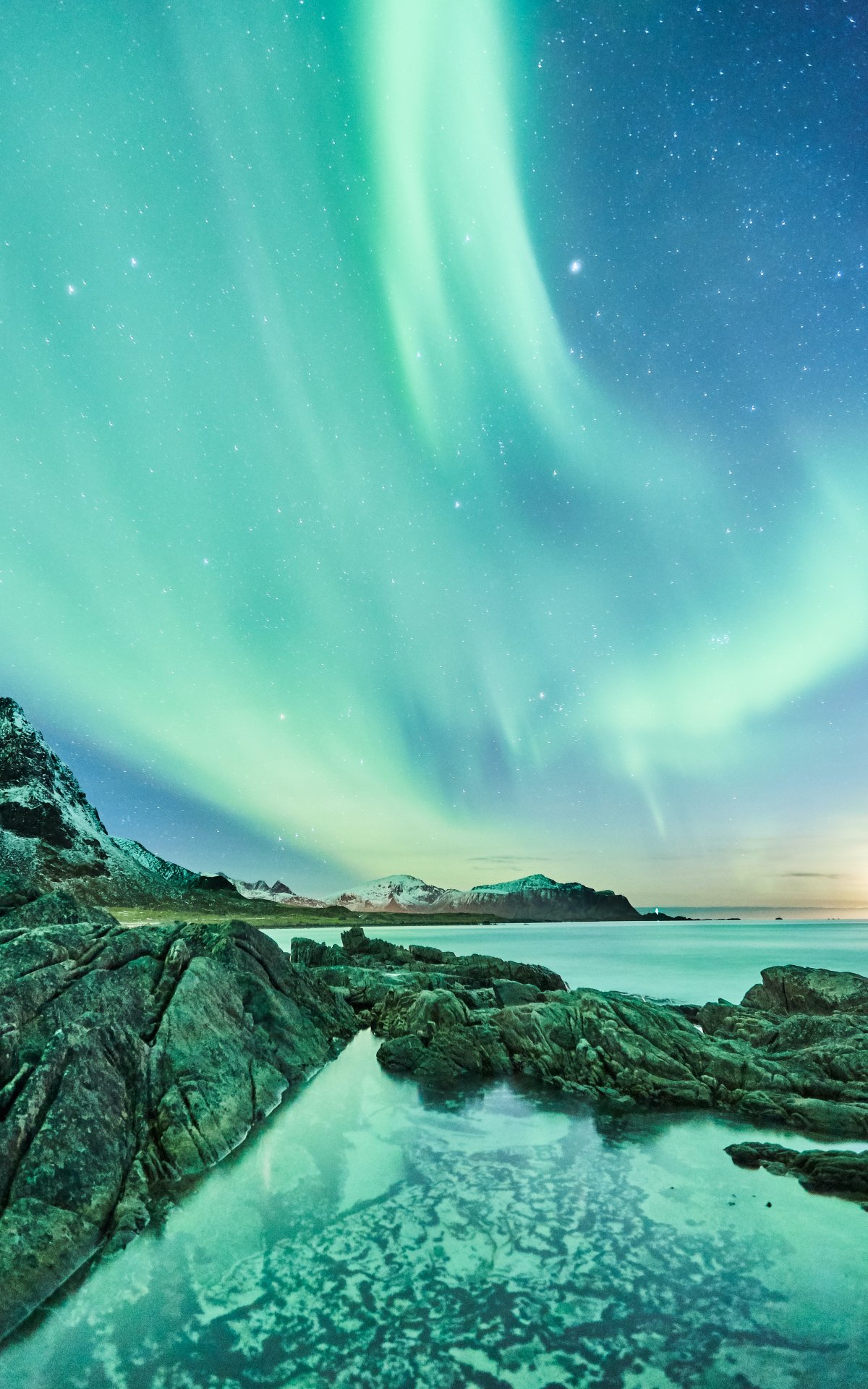 Обои: северное сияние, ночь, зеленый - 1200x1920