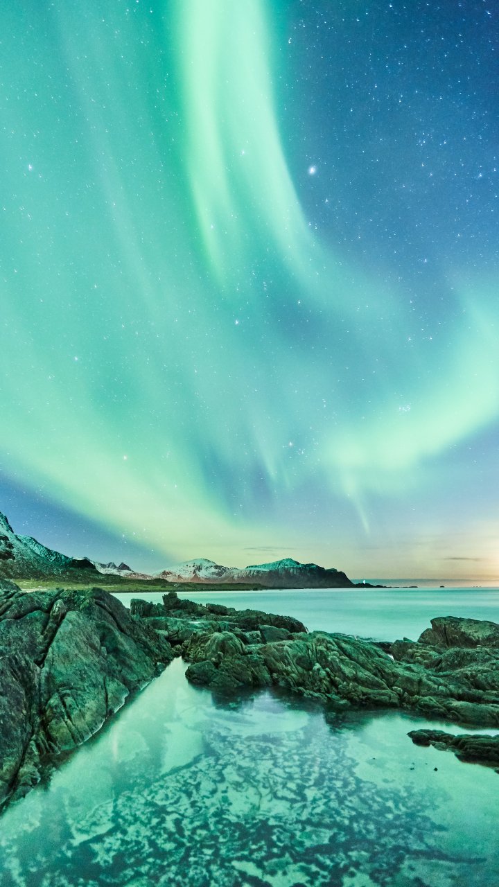 Обои: северное сияние, ночь, зеленый - 720x1280