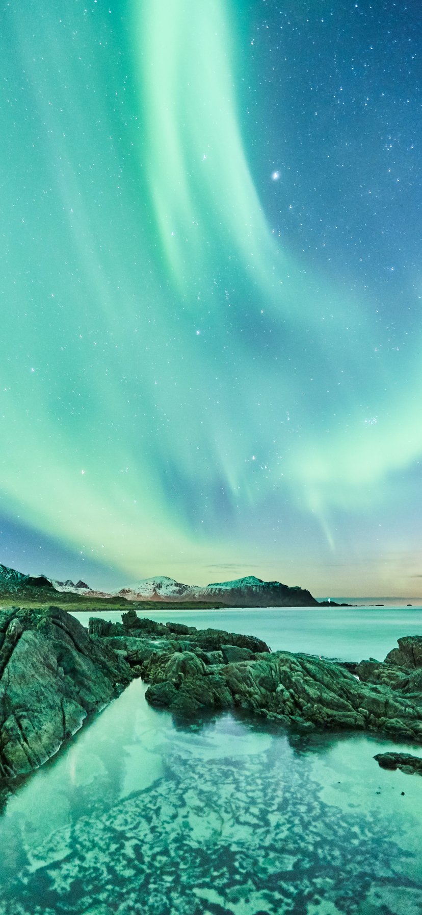 Обои: северное сияние, ночь, зеленый - 828x1792