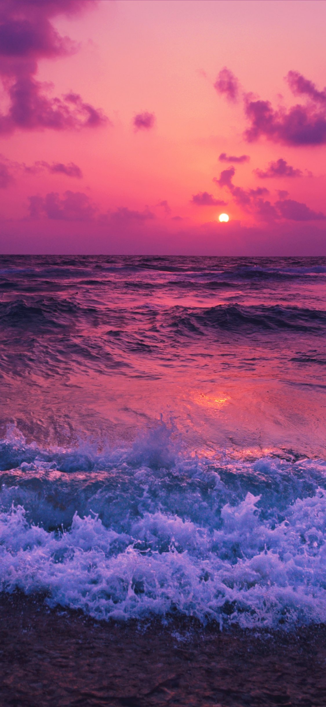 Обои: море, волны, розовое небо - 1125x2436