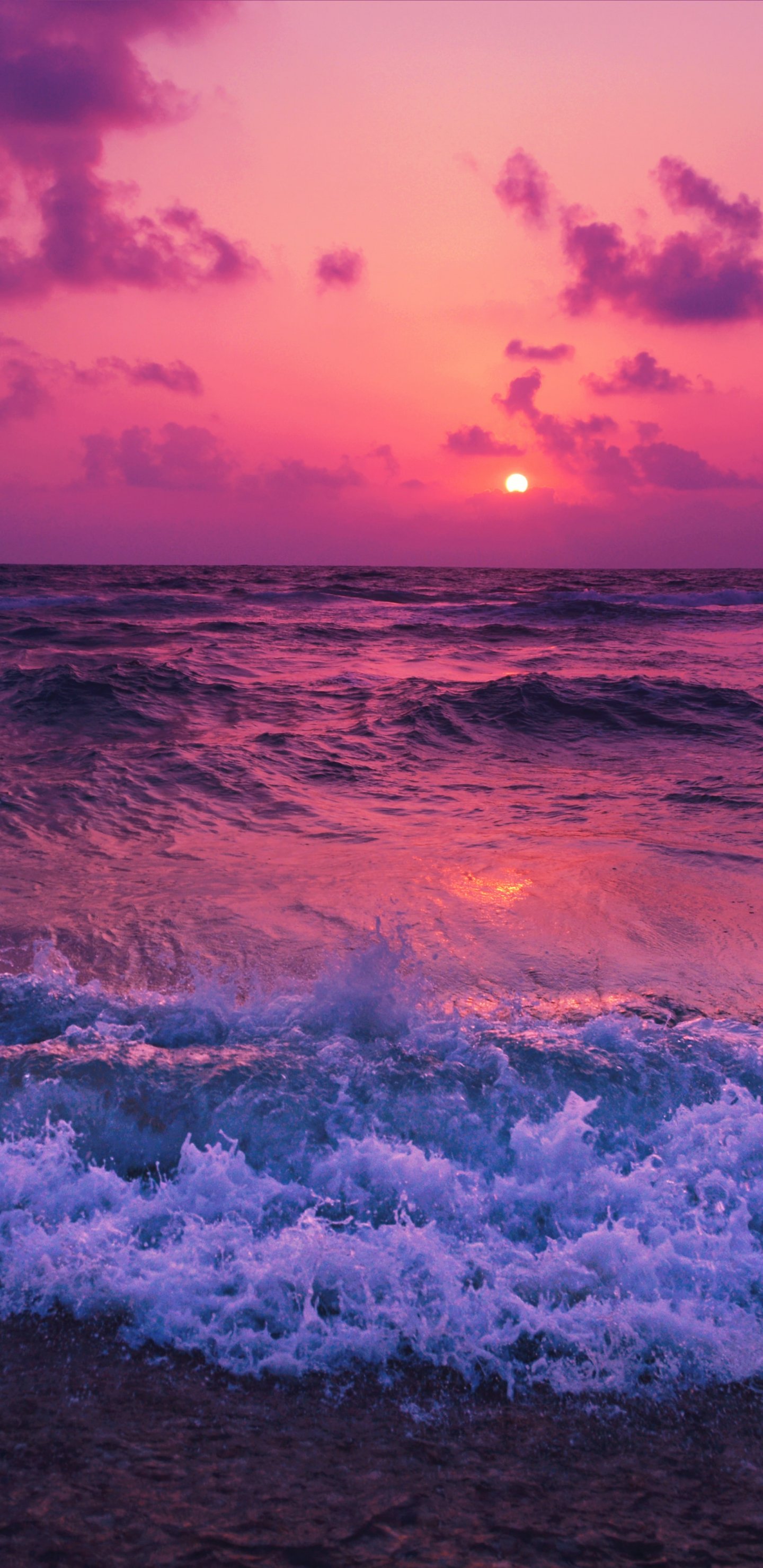 Обои: море, волны, розовое небо - 1440x2960
