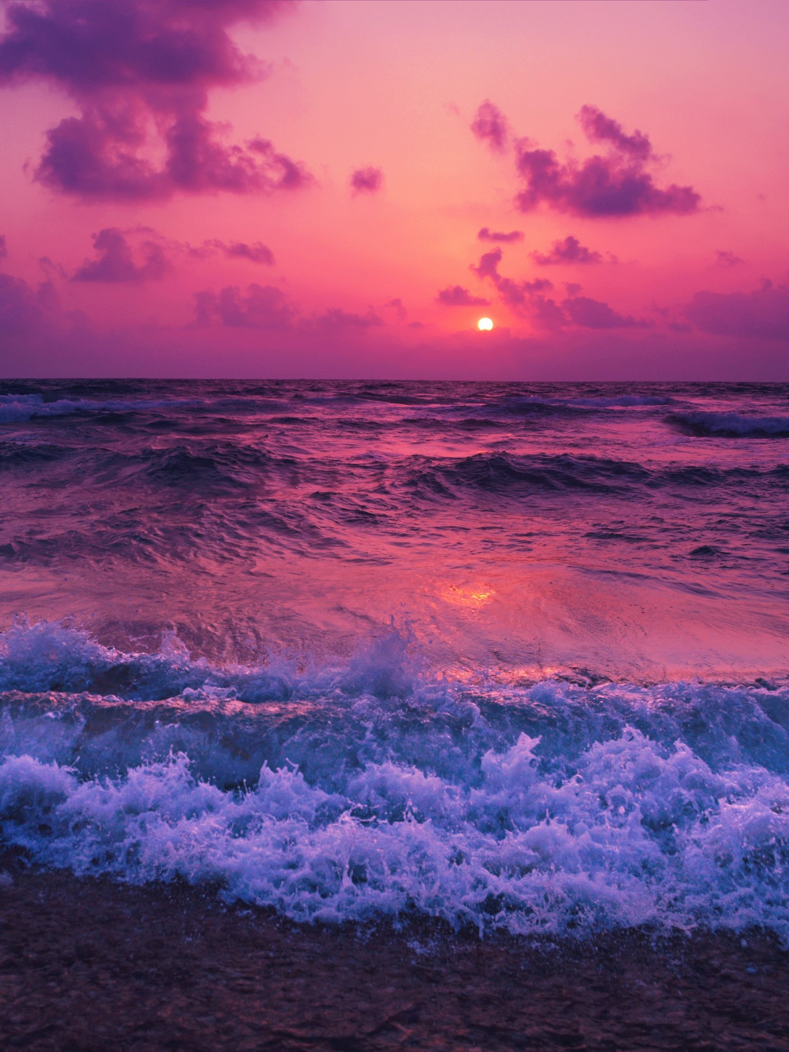 Обои: море, волны, розовое небо - 1536x2048