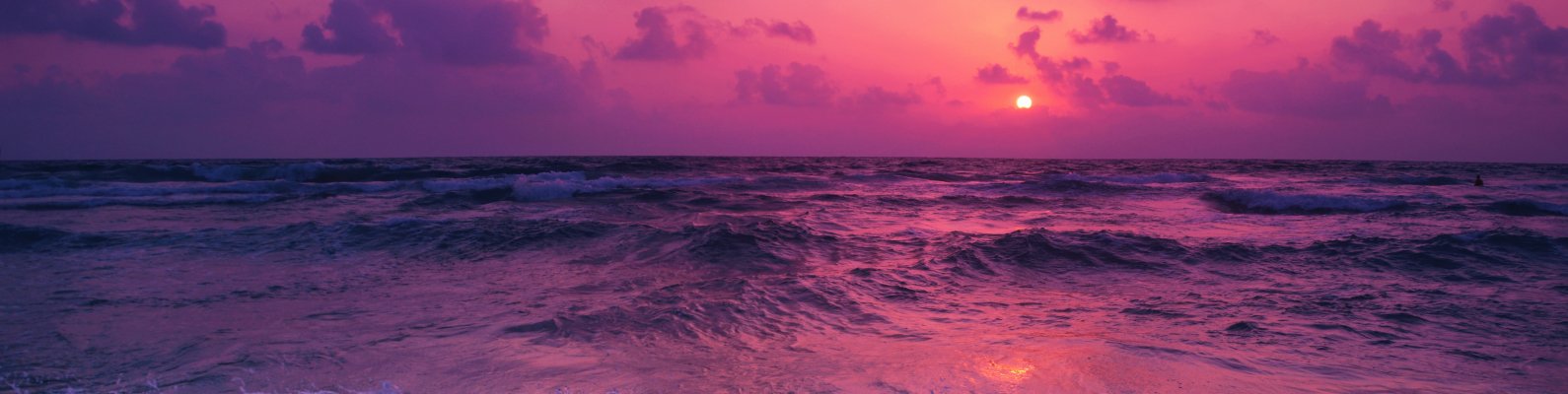 Обои: море, волны, розовое небо - 1590x400