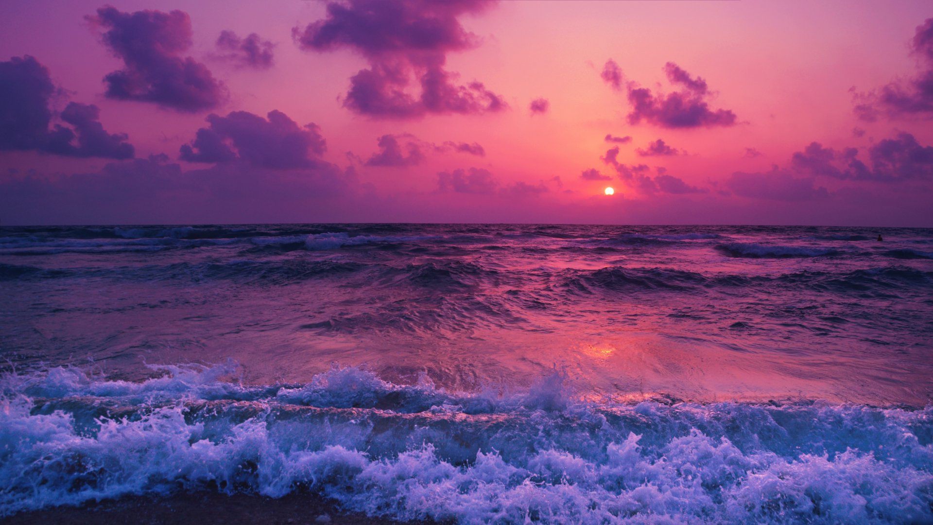 Обои: море, волны, розовое небо - 1920x1080