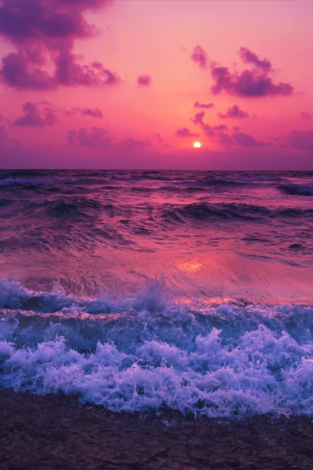 Обои: море, волны, розовое небо - 640x960