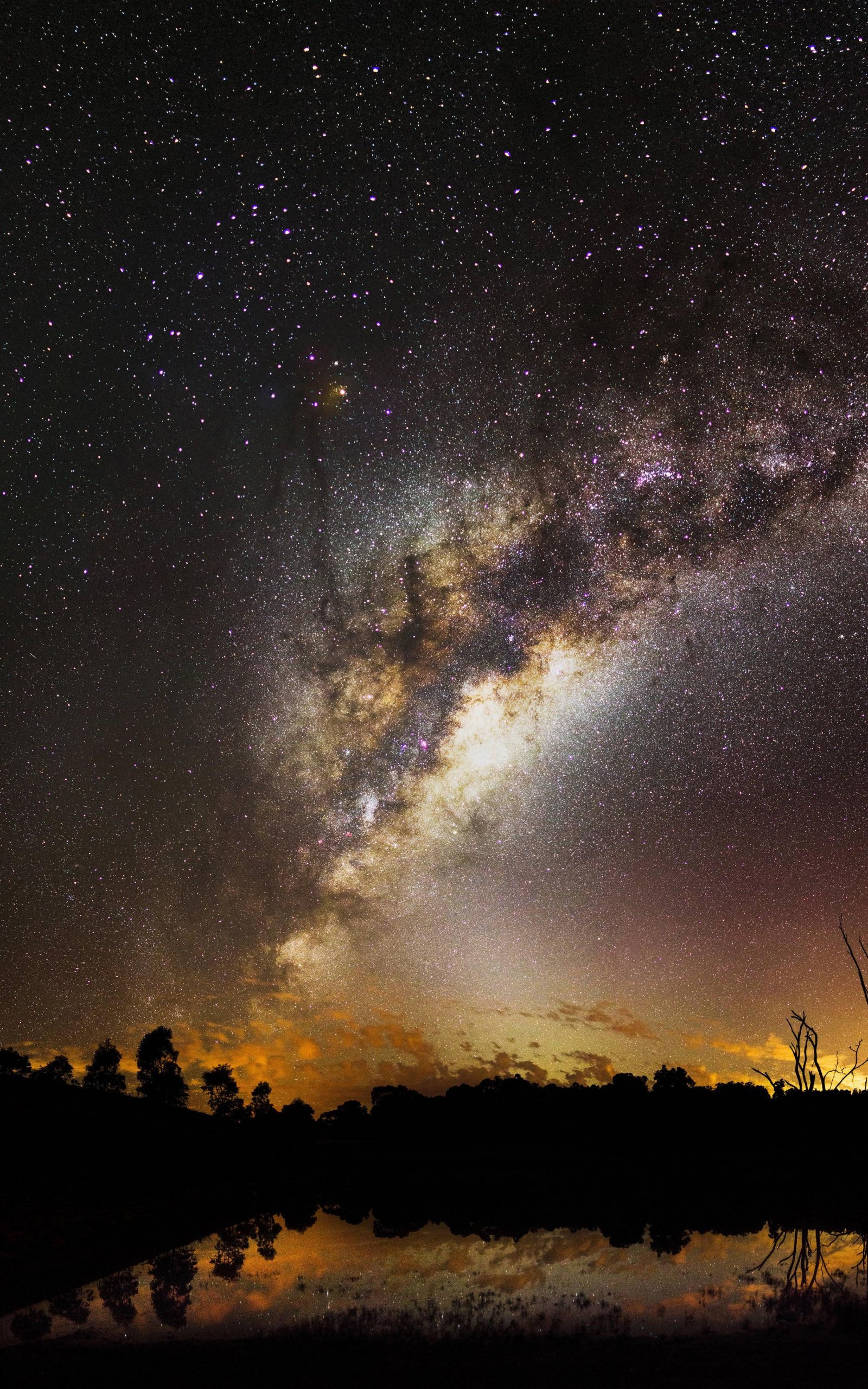 дерево, звездное небо, ночь
