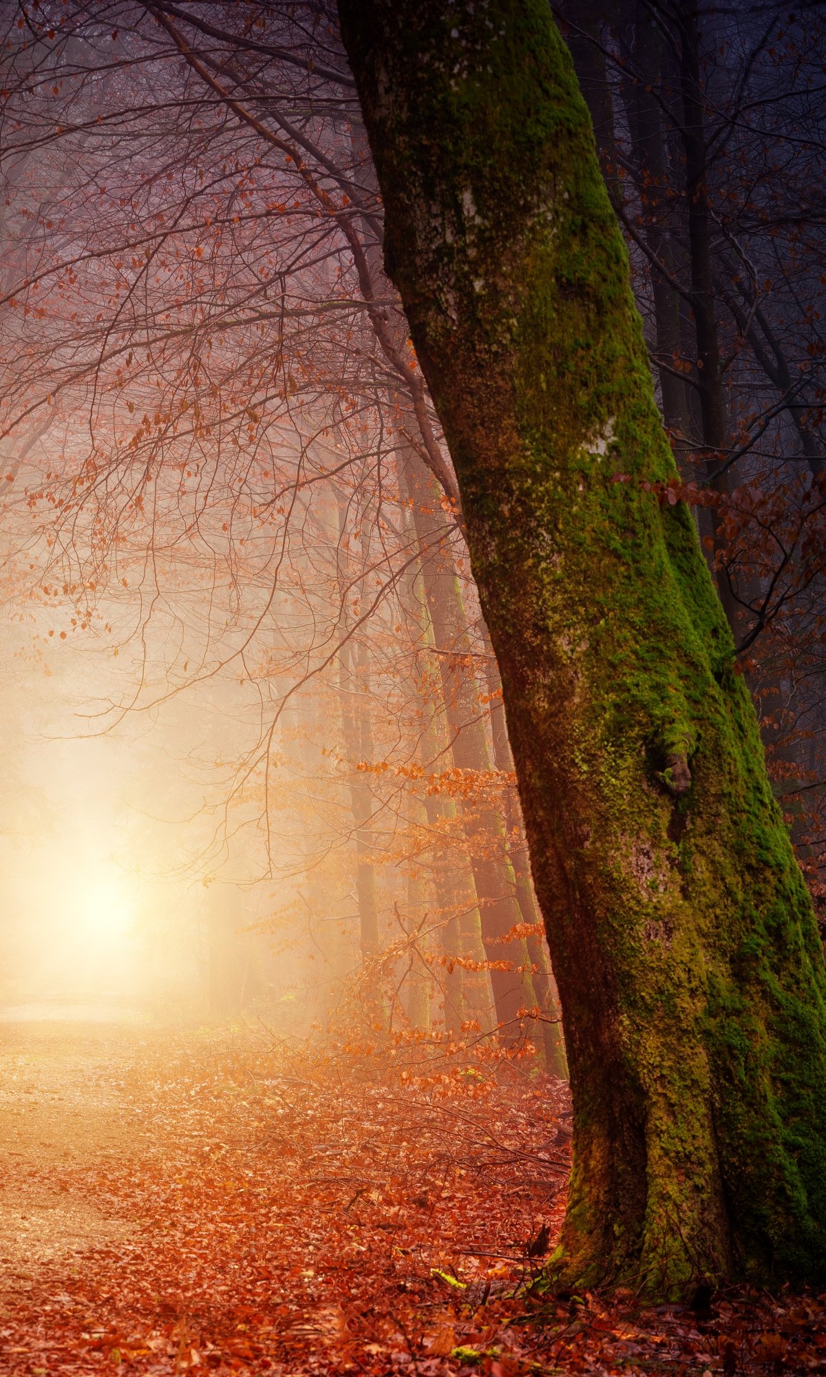 Обои: лес, тропинка, туман - 1200x2000