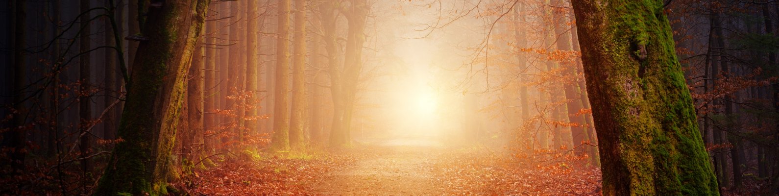 Обои: лес, тропинка, туман - 1590x400