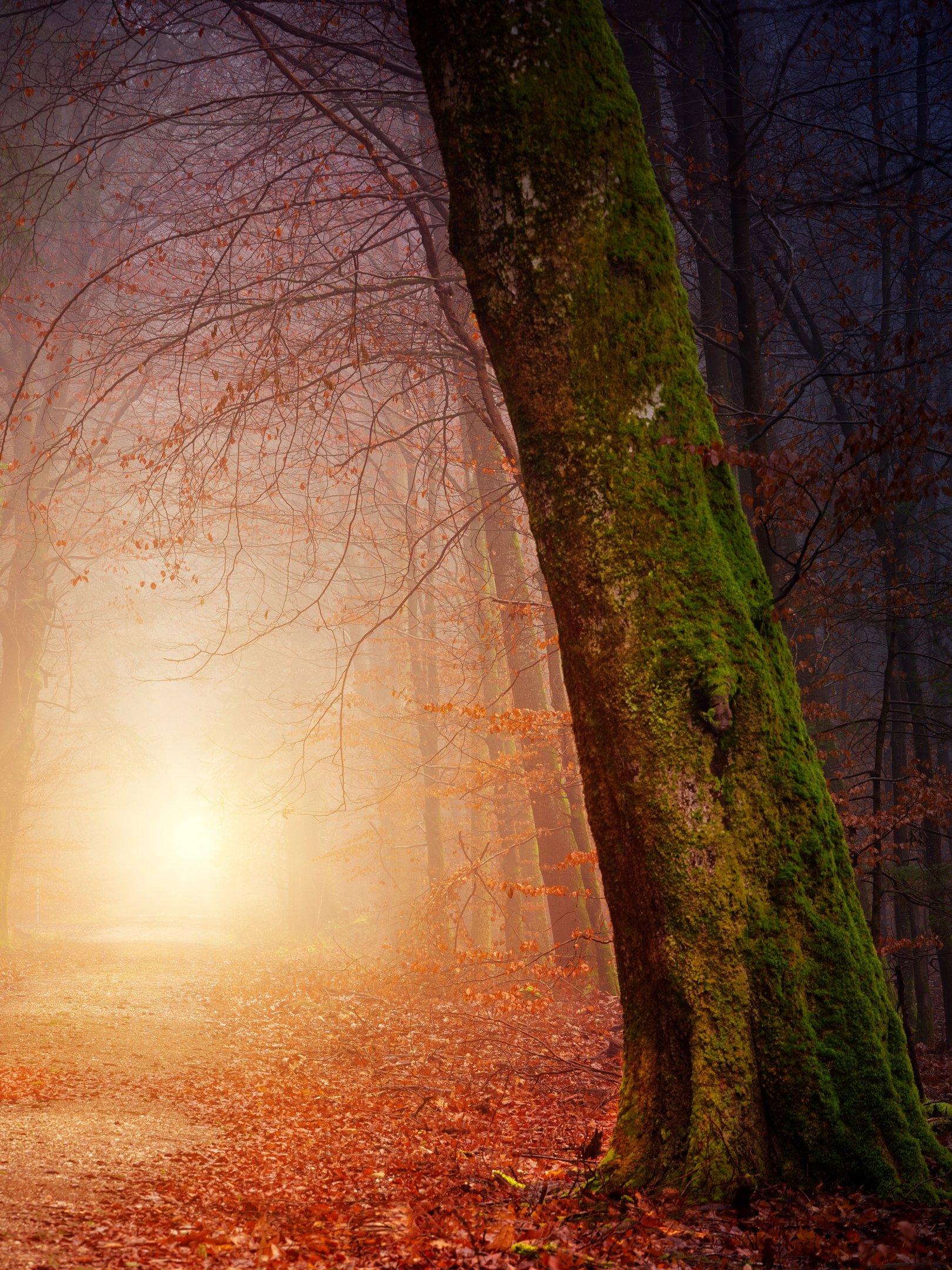 Обои: лес, тропинка, туман - 1620x2160