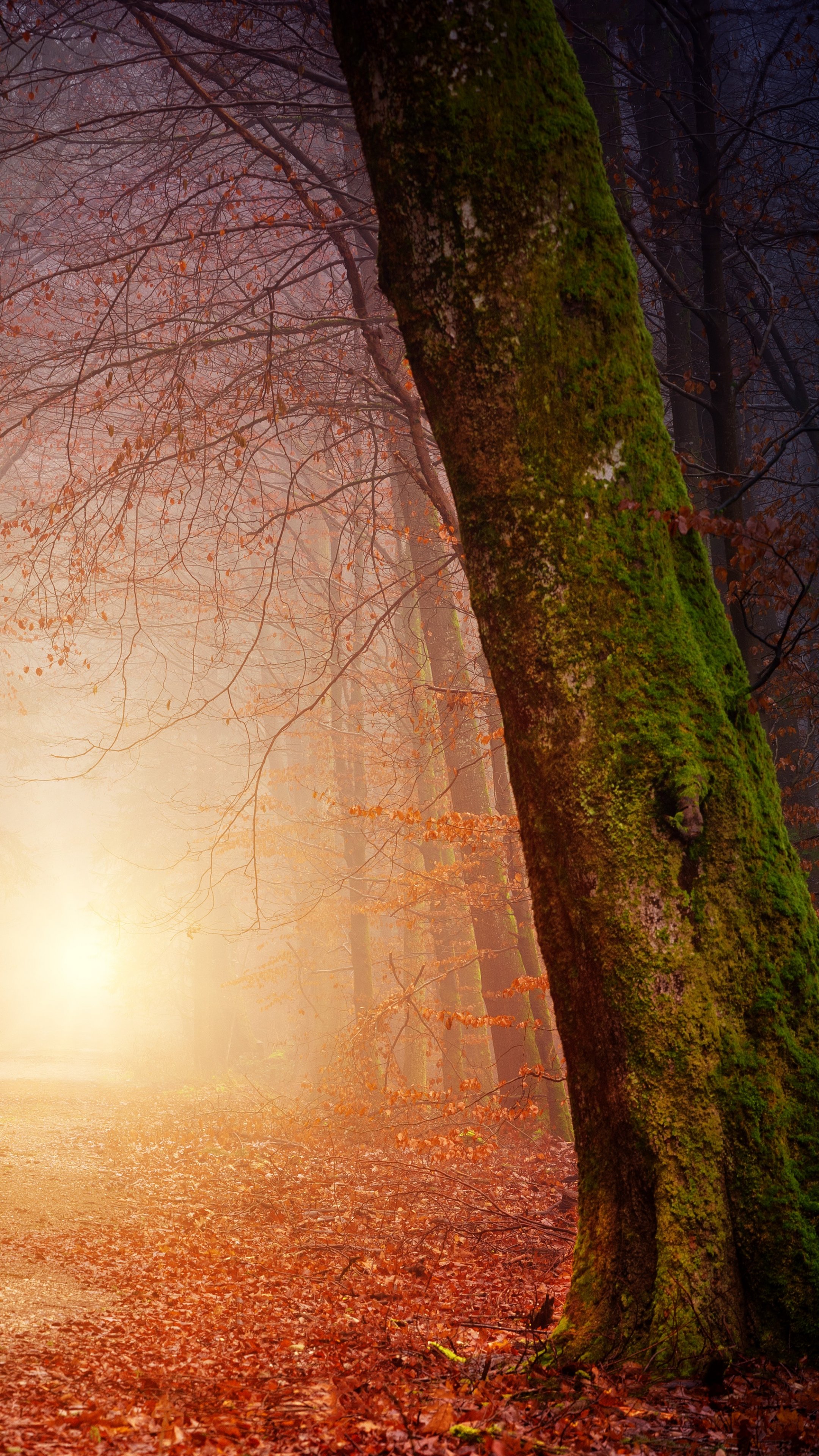 Обои: лес, тропинка, туман - 2160x3840