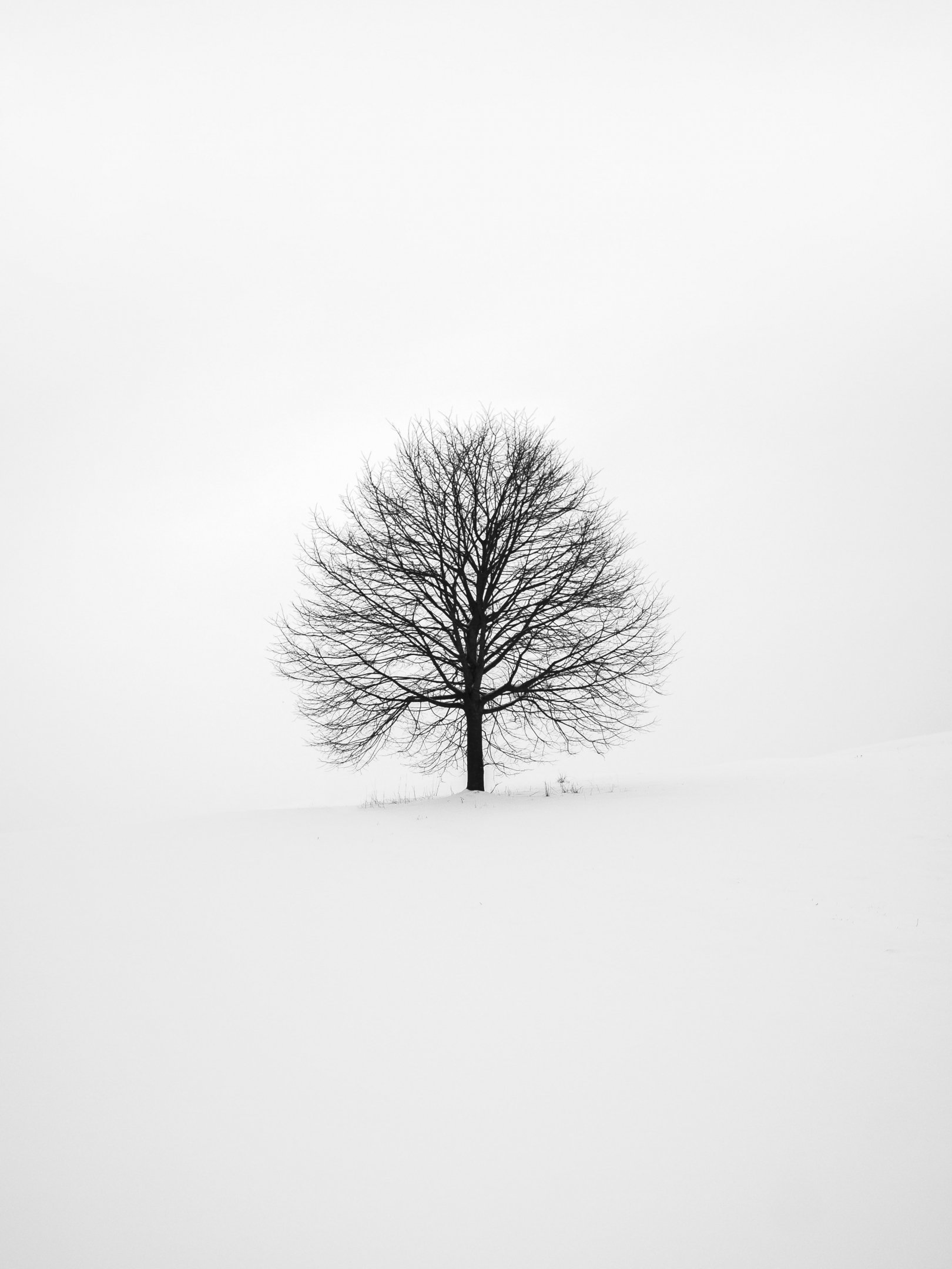 одинокое дерево, зима, белый