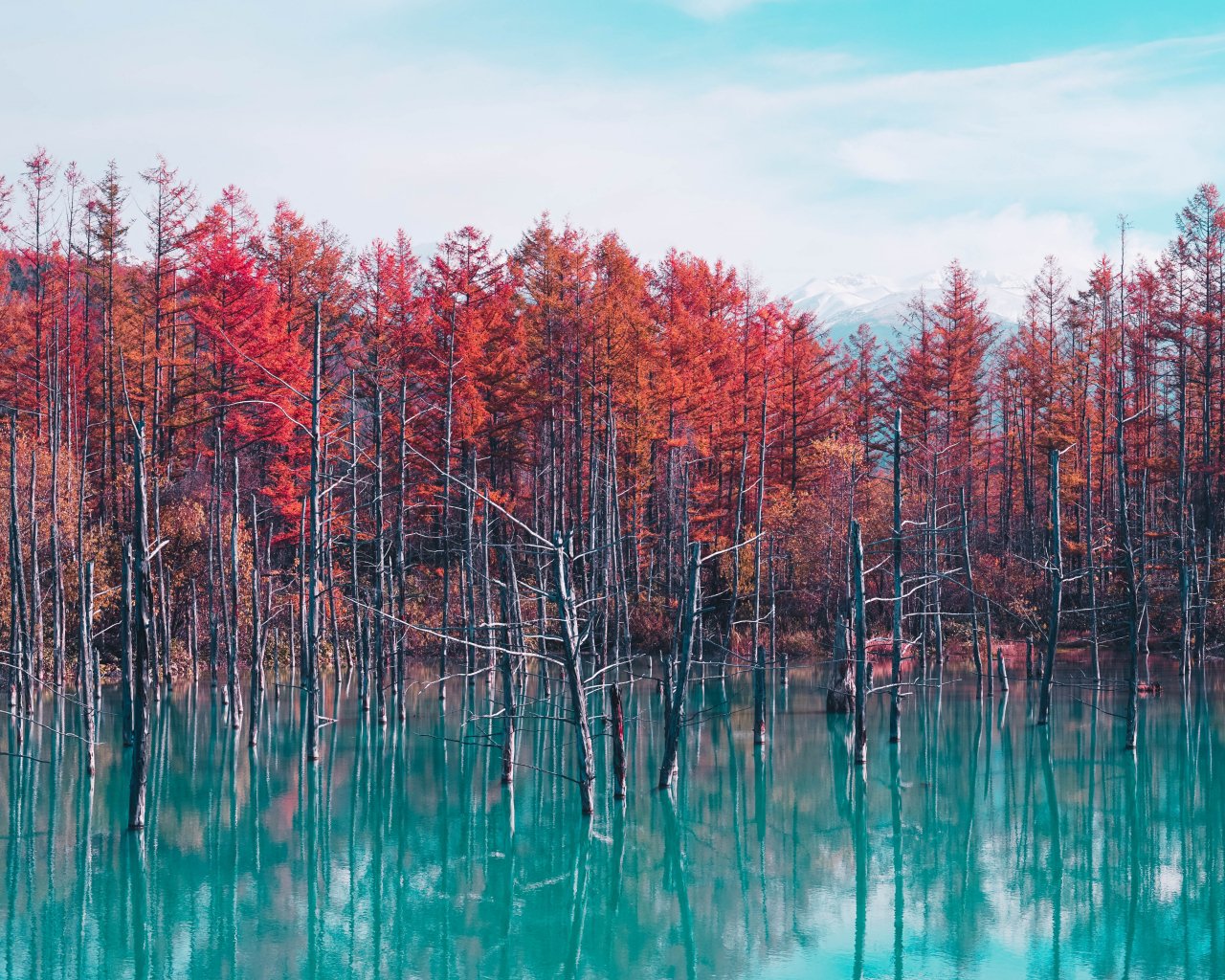 Обои: озеро, лес, красный - 1280x1024