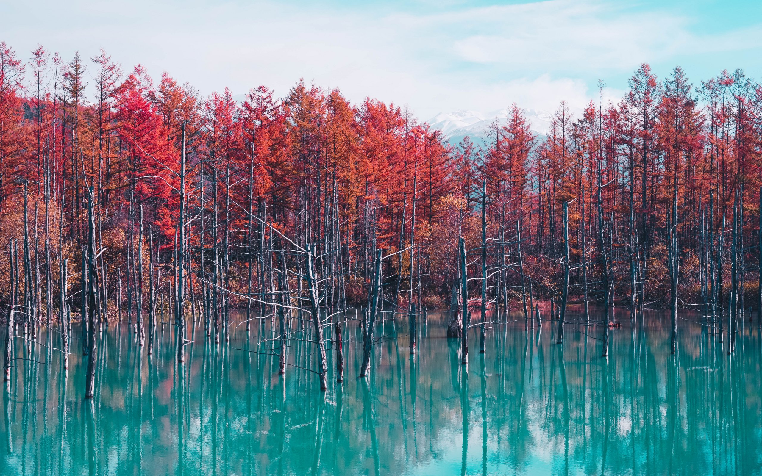 Обои: озеро, лес, красный - 2560x1600