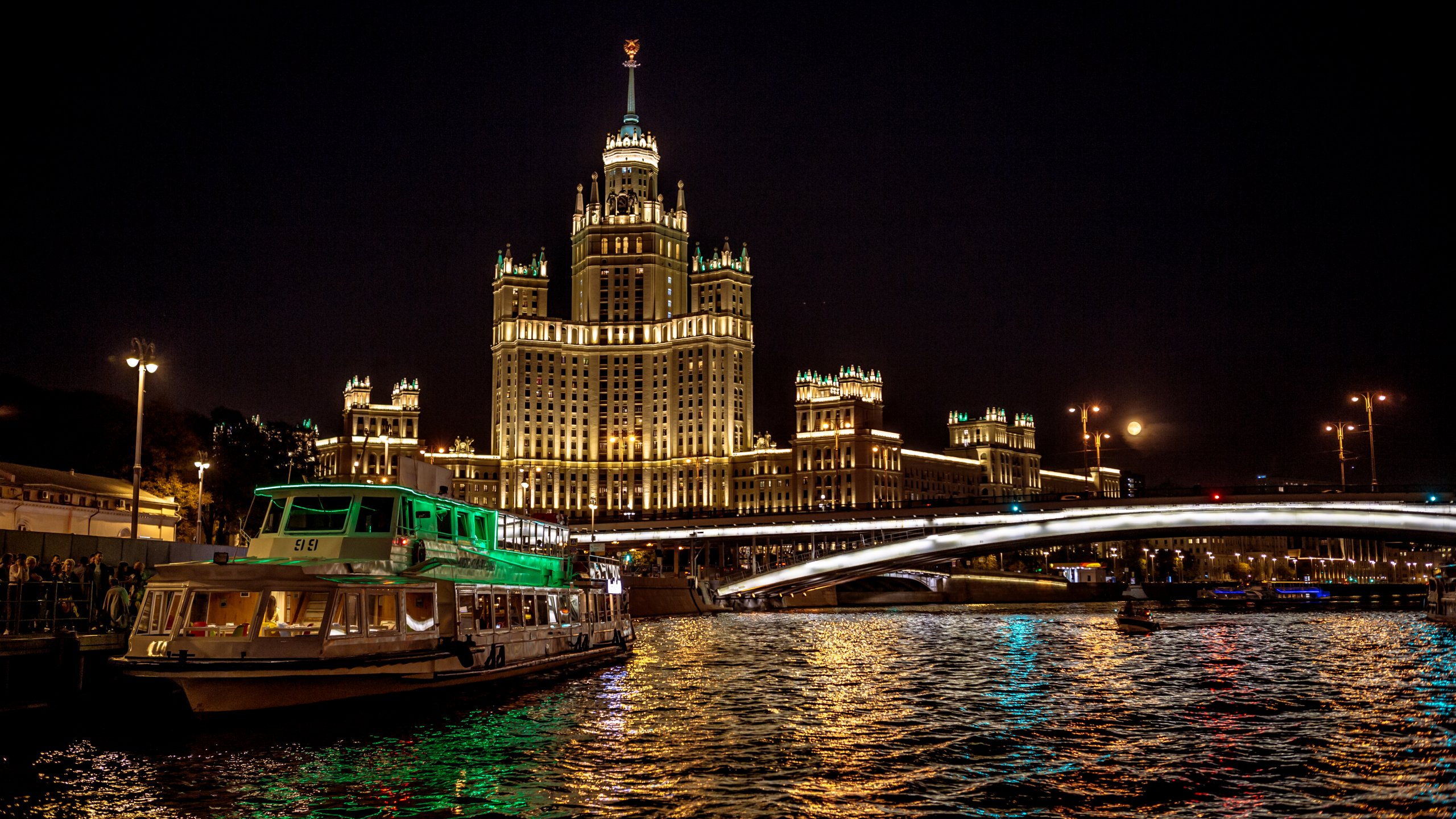 Обои: Москва, река, Сталинская высотка - 2560x1440