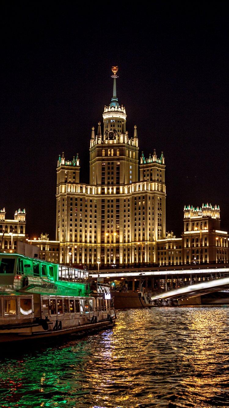 Обои: Москва, река, Сталинская высотка - 750x1334